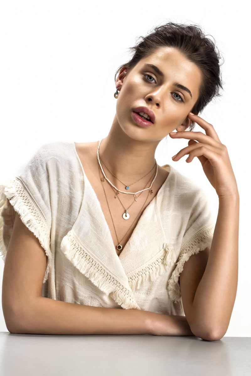 3.70 gr 14 ayar pembe altın 0.20 crt turkuaz zincir uzunlugu; 45 cm