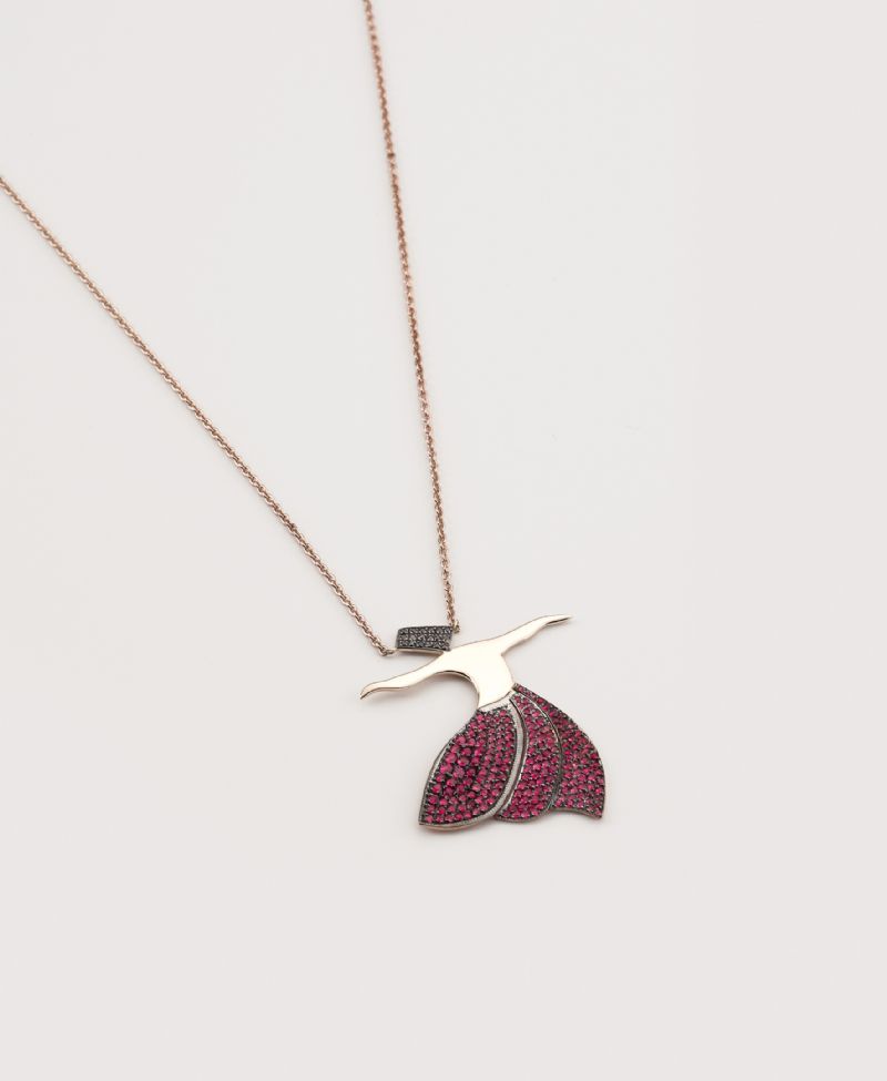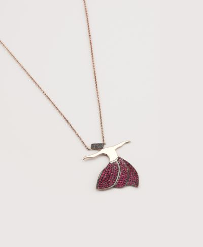 5.50 gr 14 ayar pembe altın 0.10 crt siyah pırlanta 0.80 crt yakut zincir uzunlugu; 45 cm