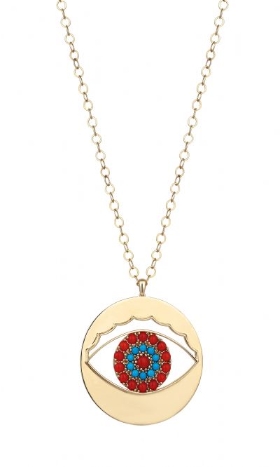 12.90 gr 14 ayar sarı altın 1.36 crt mercan, 0.04 crt turkuaz kolye uzunlugu 70 cm