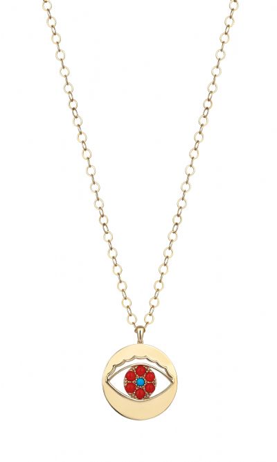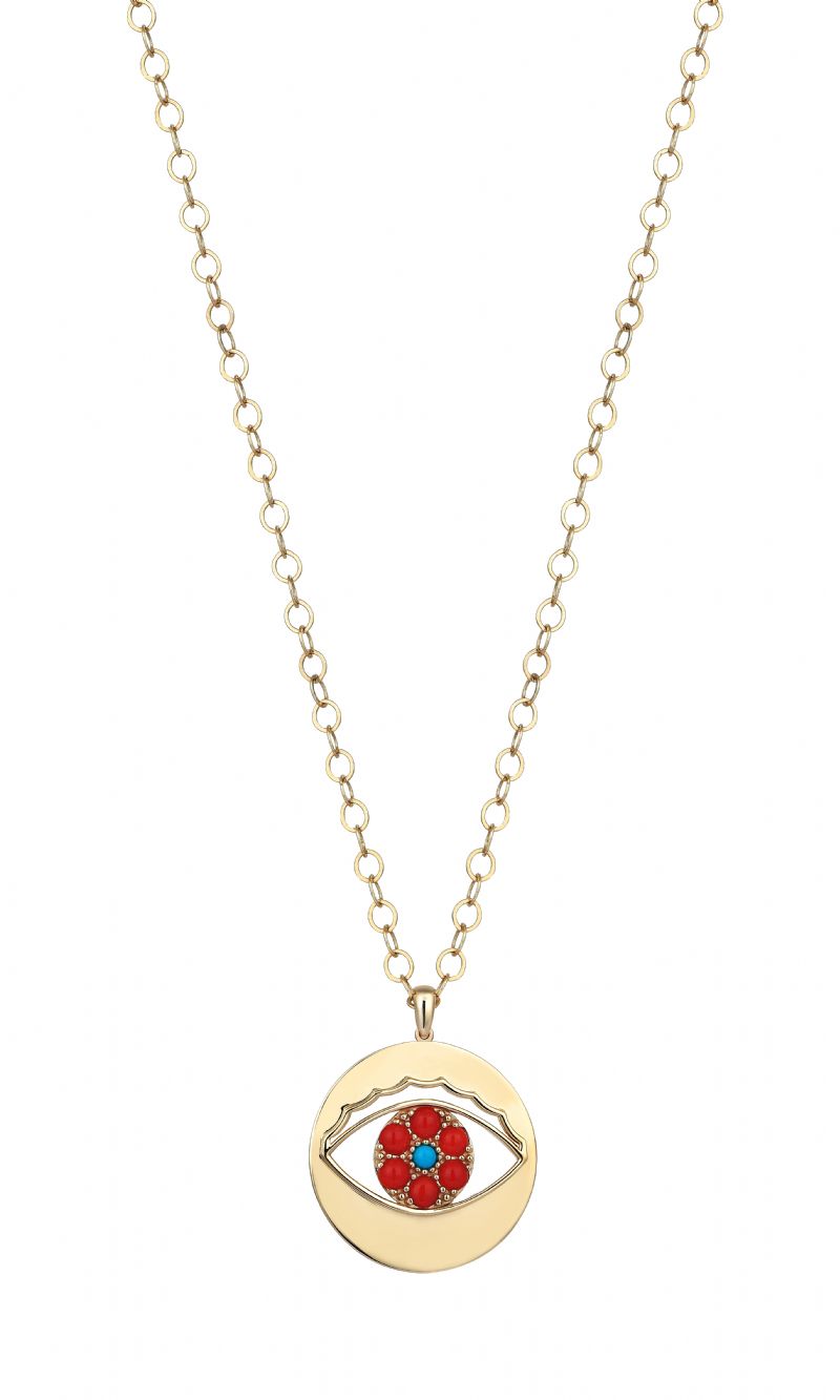 6.23 gr 14 ayar sarı altın 0.48 crt mercan 0.04 crt turkuaz kolye uzunlugu 45 cm