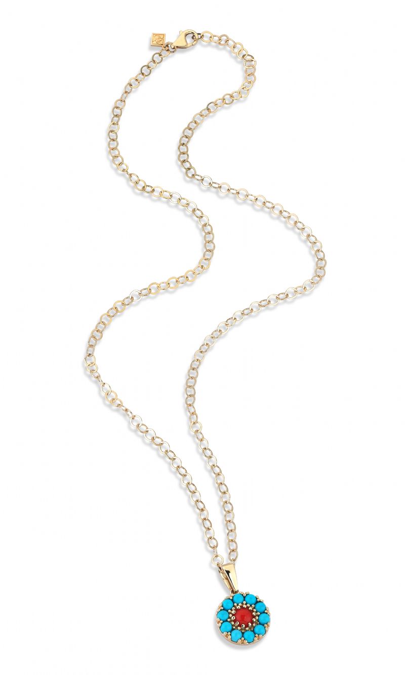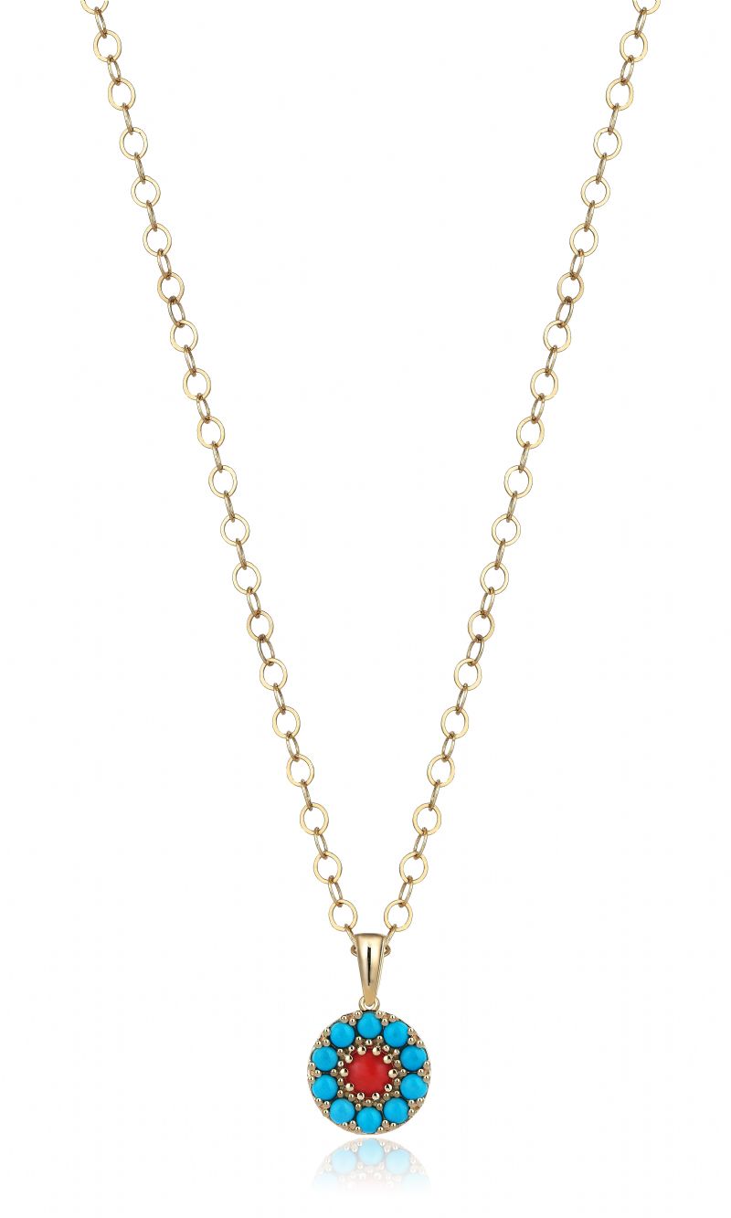 3.52 gr 14 ayar sarı altın 0.4 crt turkuaz 0.24 crt mercan kolye uzunlugu 45 cm