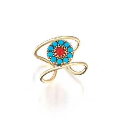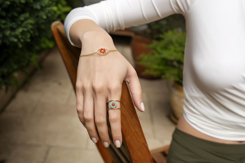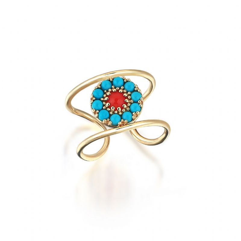 3.65 gr 14 ayar sarı altın 0.8 crt turkuaz 0.08 crt mercan
