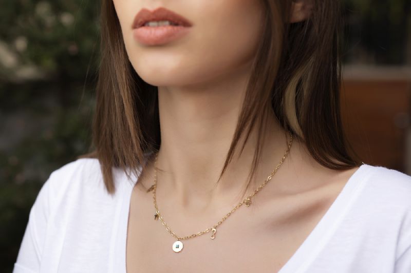 2.70 gr 14 ayar sarı altın 0.05 crt turkuaz zincir uzunlugu 45 cm