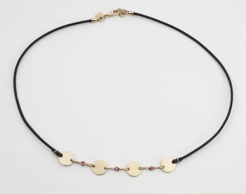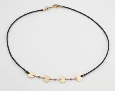 2.46 gr 14 ayar pembe altın 0.03 crt yakut deri uzunlugu; 40 cm