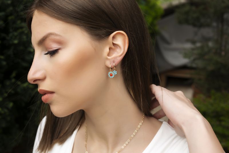 4.03 gr 14 ayar sarı altın 0.48 crt mercan 0.8 crt turkuaz