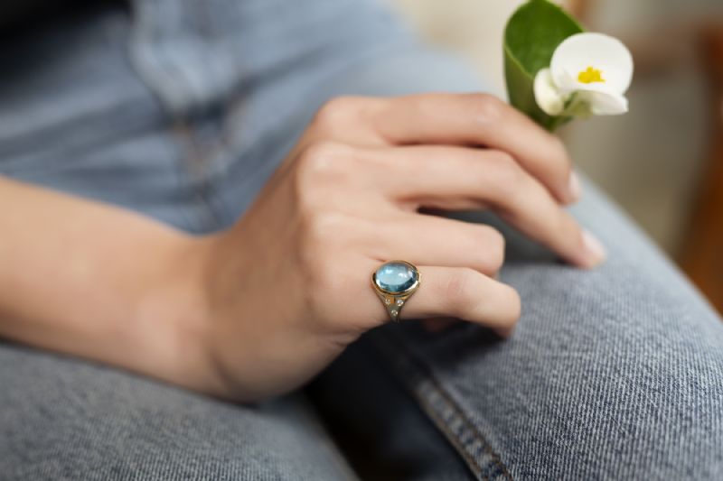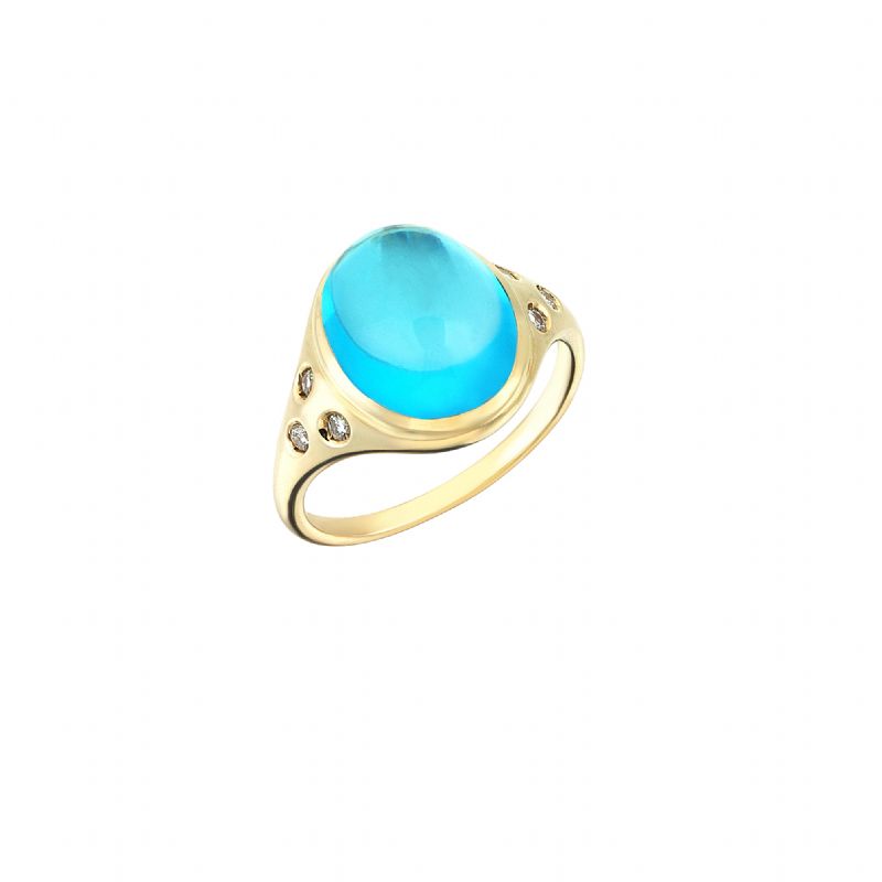 3.92 gr 14k yellow gold 0.09 crt diamond blue topaz stone