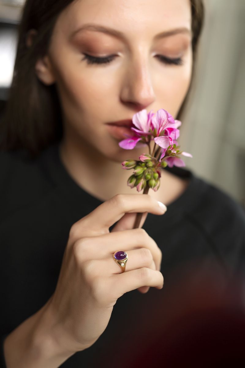 3.75 gr 14k yellow gold 0.07ct diamond amethyst stone