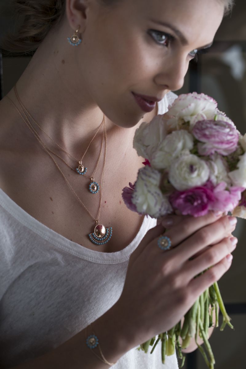 7.30 gr 14k rose gold 1.31 crt turquoise chain length; 60 cm