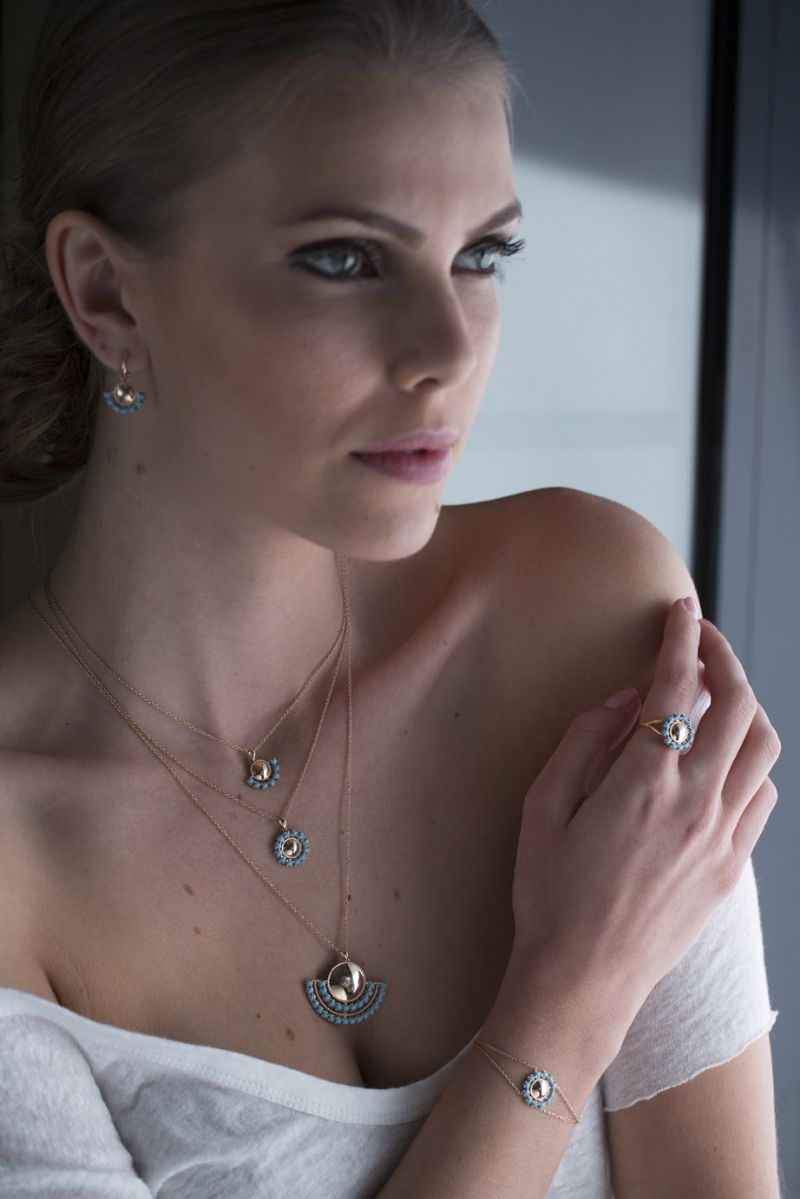 2.86 gr 14k rose gold 0.56 crt turquoise