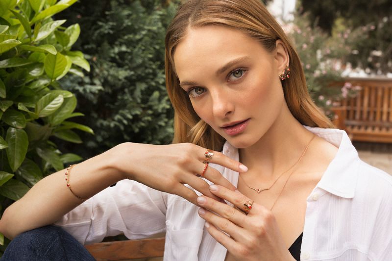 3.24 gr 14k rose gold 0.08 crt coral chain length; 45 cm