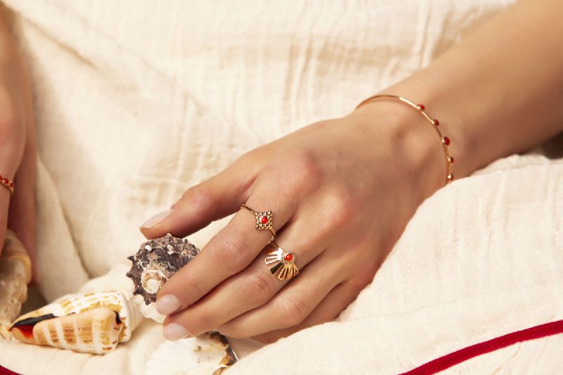 2.24 gr 14k rose gold 0.08 crt diamond 0.08 crt coral