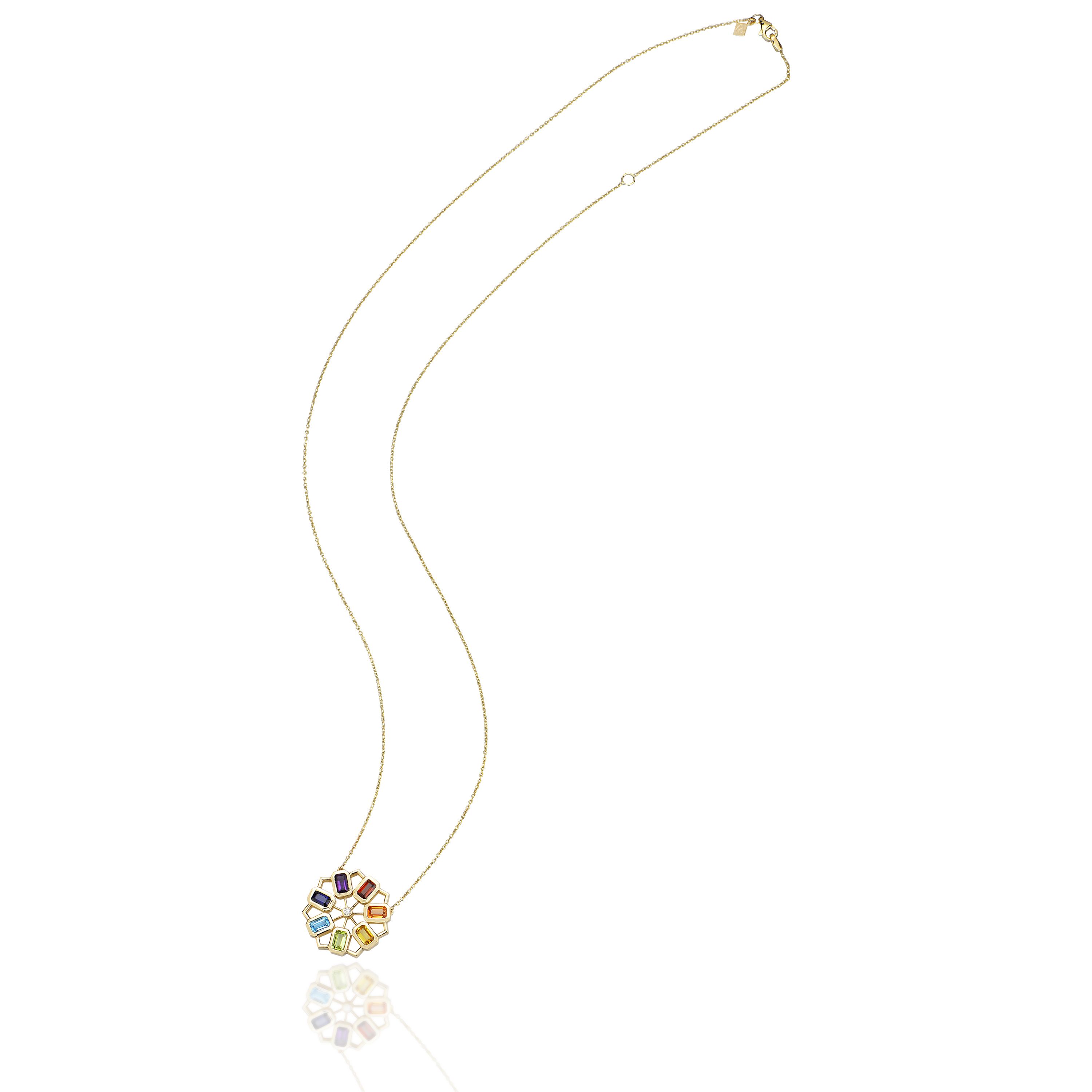 İRİS renkli taşlı ve tek pırlantalı kolye